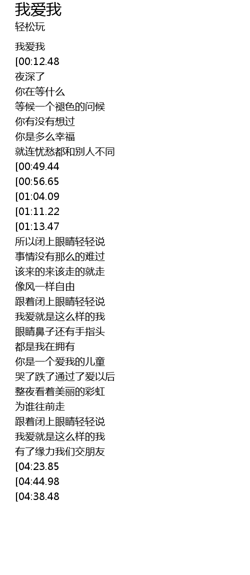 | [04:55.04][04:38.48] | 我爱你也爱我 |