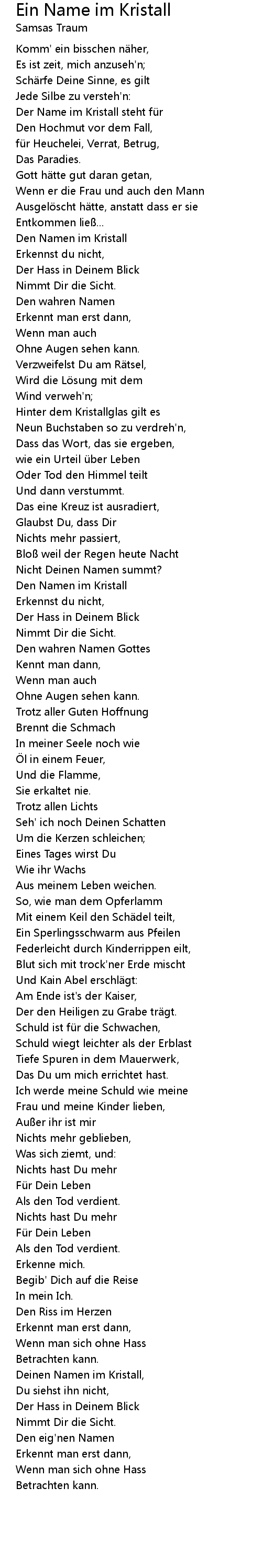 | Deinen Namen im Kristall, | |
