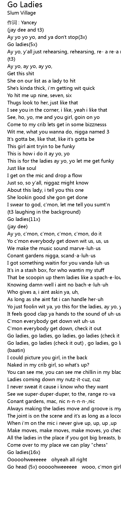 | Go ladies, go ladies (check it out) , go ladies, go ladies | |