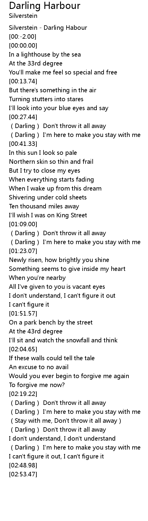 | [02:33.16] | Stay with me, Don' t throw it all away |