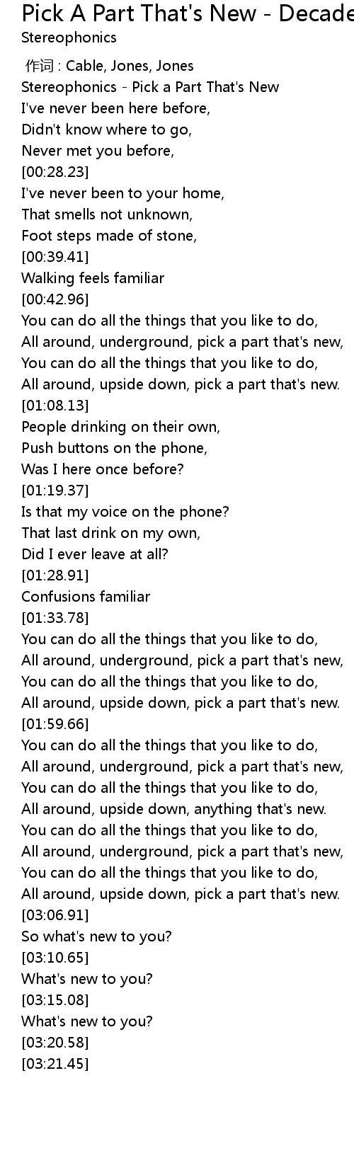 | [00:00.91] | Stereophonics Pick a Part That' s New |