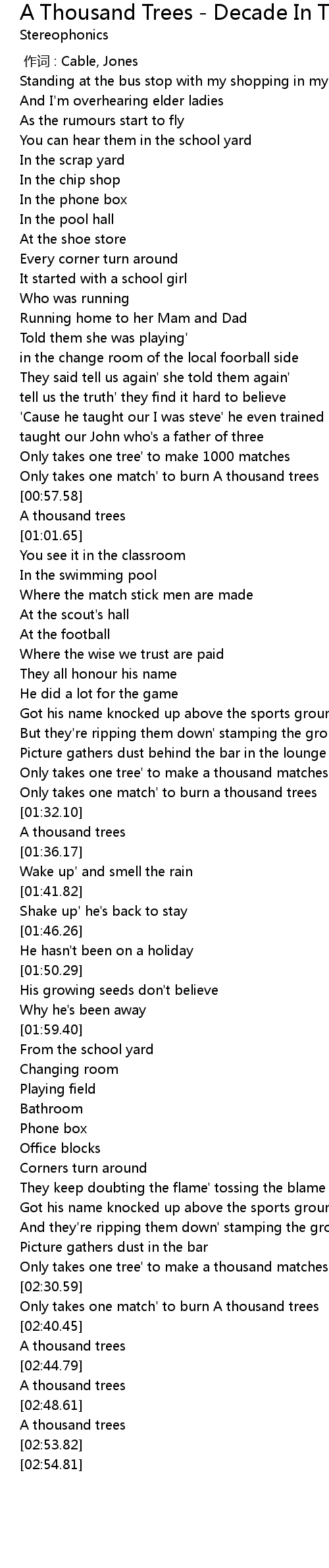 | [02:28.71] | Only takes one tree' to make a thousand matches |