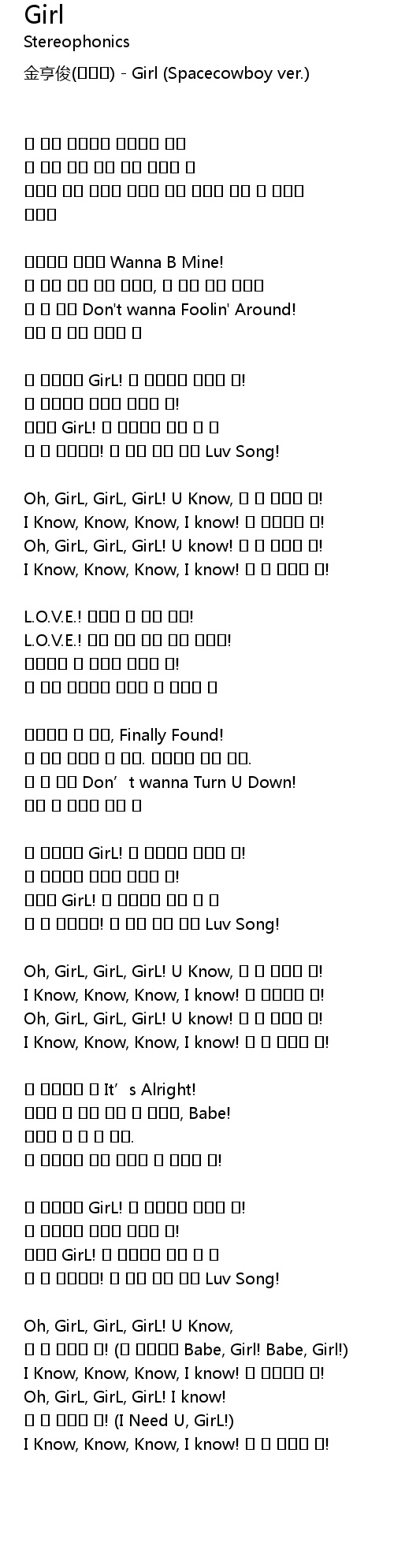 | Oh, GirL, GirL, GirL! U know! 넌 내 사랑인 걸! | |
