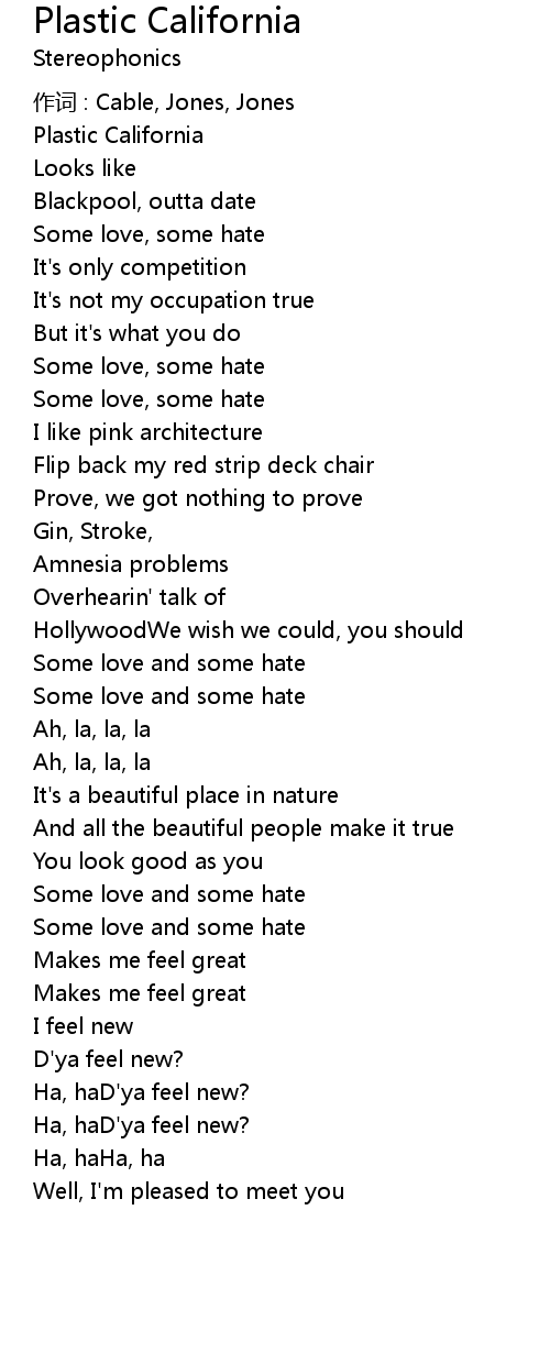 | Song | Plastic California |