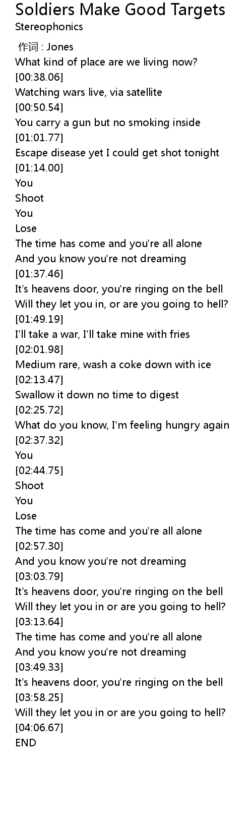 | Song | Soldiers Make Good Targets |