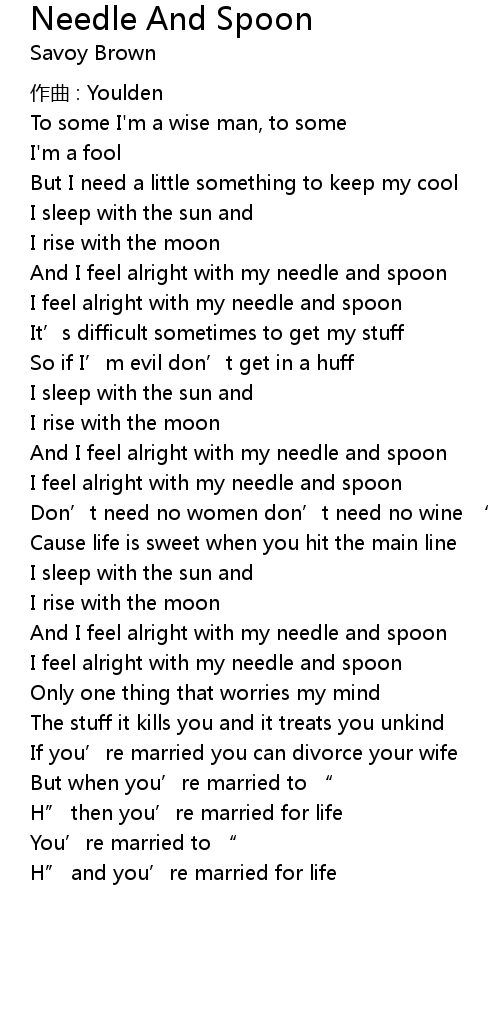 | And I feel alright with my needle and spoon | |