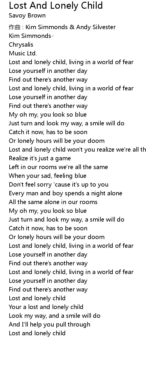 | Song | Lost And Lonely Child |