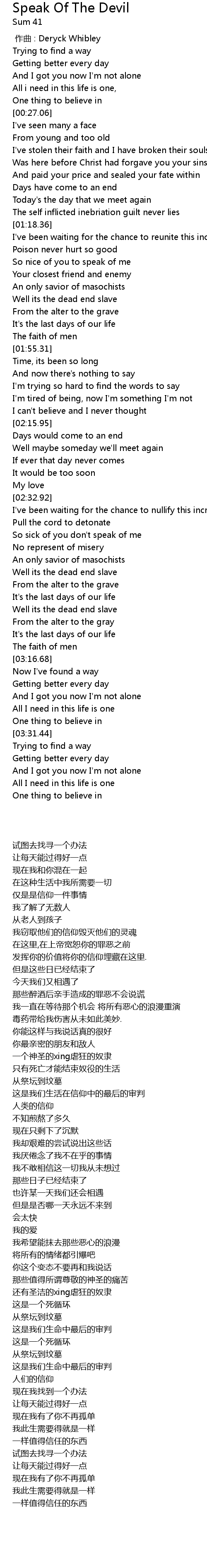 | [00:00.00] | 作曲 : Deryck Whibley |