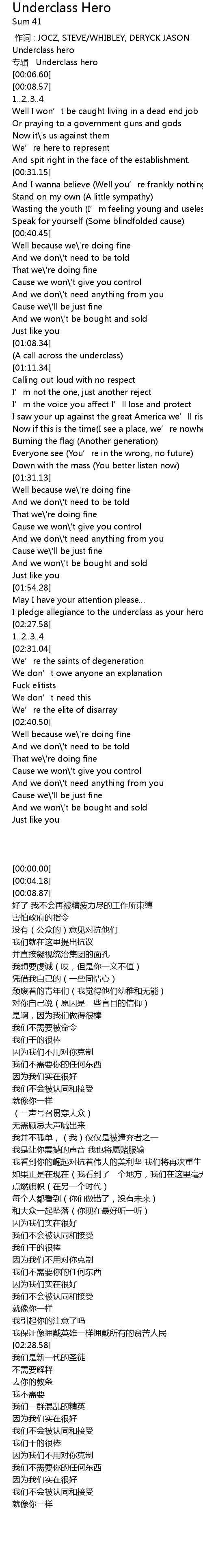 | [01:57.71] | I pledge allegiance to the underclass as your hero at large. |