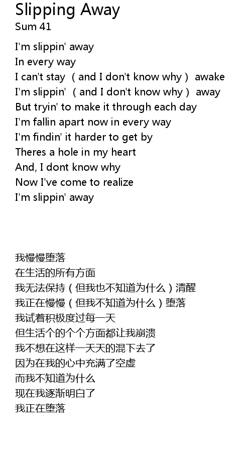 | [00:22.86] | I'm slippin' away |