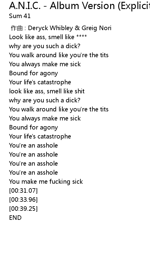 | Song | A.N.I.C. - Album Version (Explicit) |