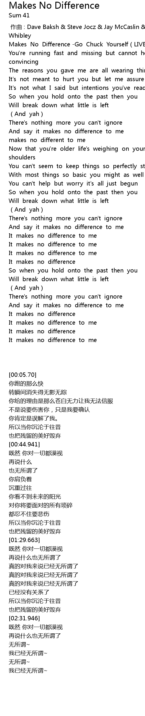 | [00:05.70] | Makes No Difference -Go Chuck Yourself(LIVE)-Sum 41 |
