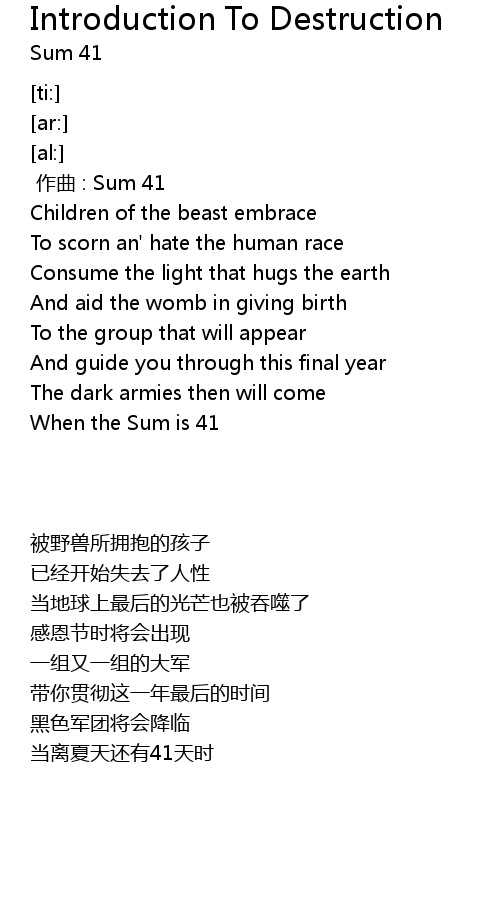 | [00:00.00] | zuo qu : Sum 41 |