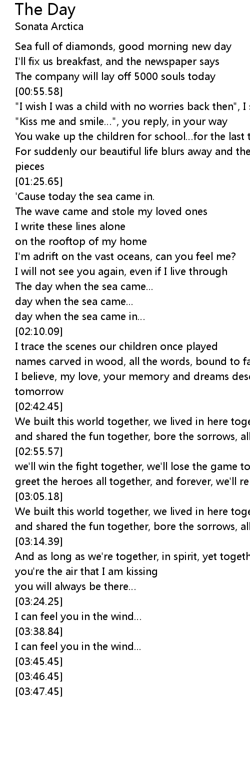 | [00:39.00] | Sea full of diamonds, good morning new day |