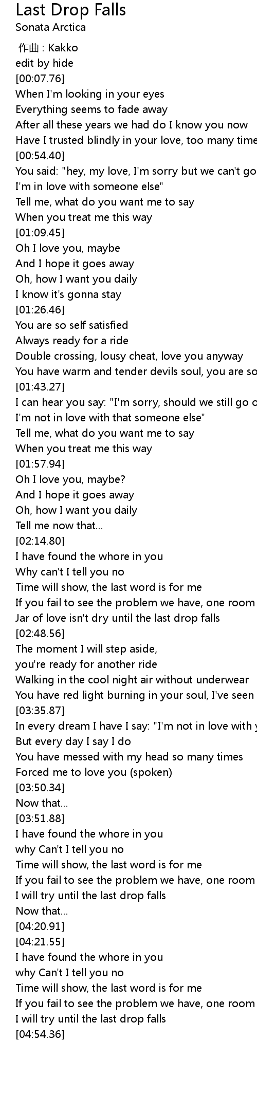| [00:55.73] | You said: "hey, my love, I'm sorry but we can't go on cause |