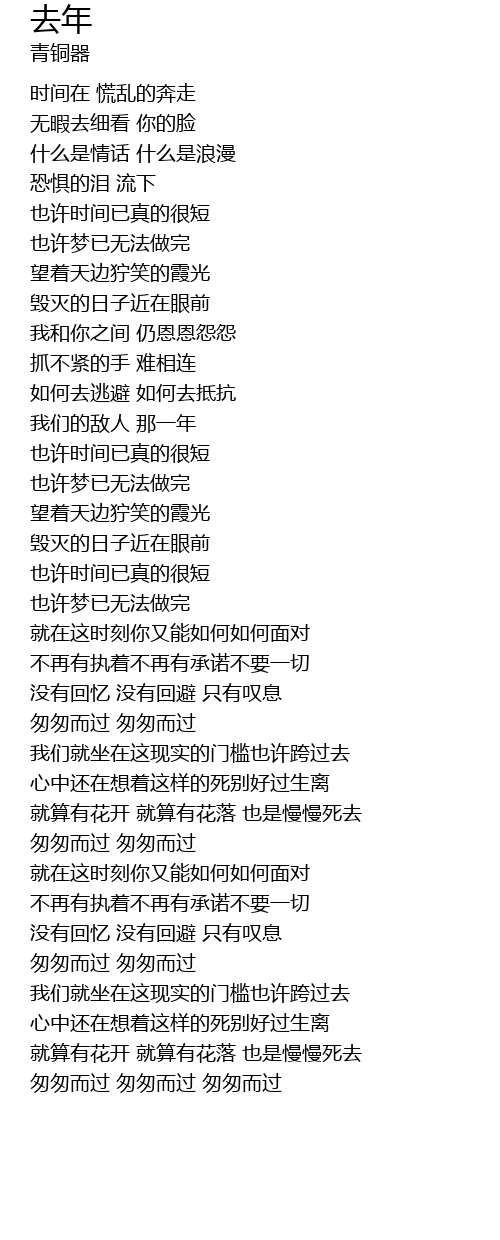 | [06:57.61] | 匆匆而过 匆匆而过 |