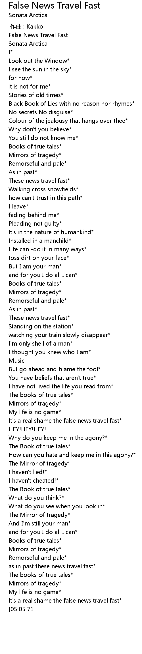| [03:23.78] | It's a real shame the false news travel fast* |
