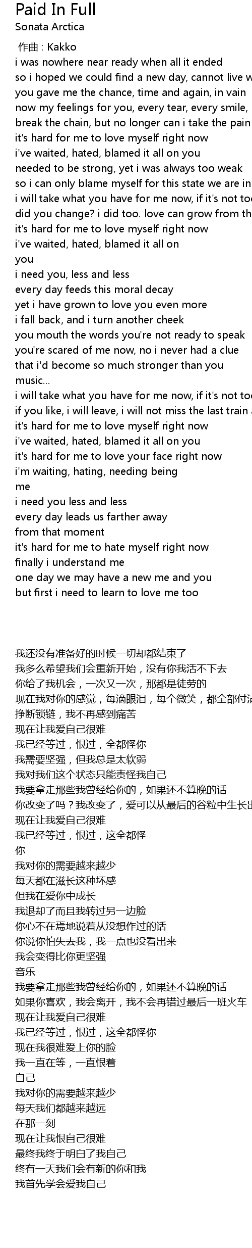 | [00:49.08] | now my feelings for you, every tear, every smile, paid in full |