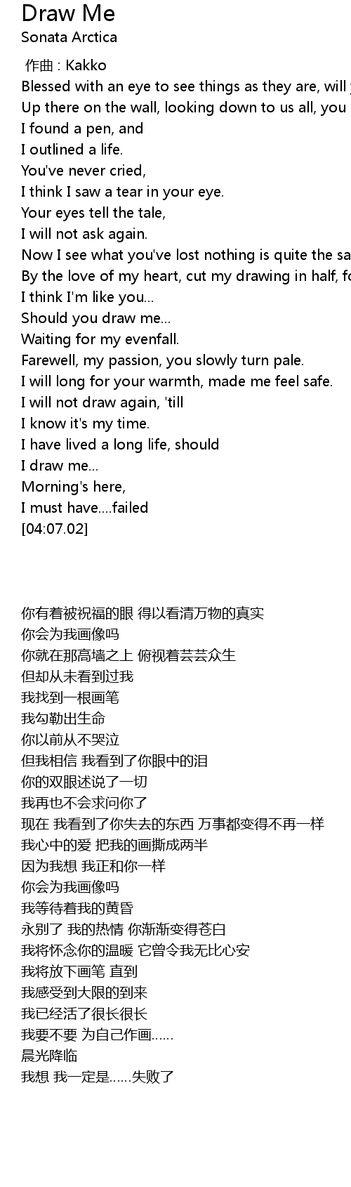 | [00:29.98] | Blessed with an eye to see things as they are, will you draw me? |