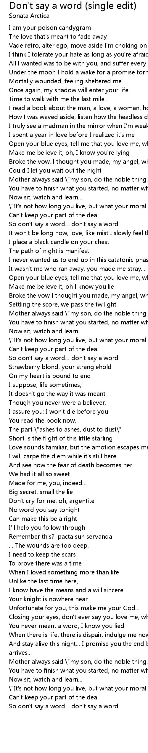 So don't say a word... don't say a word |
