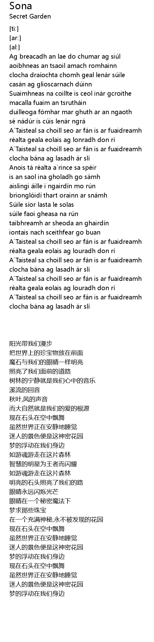 | [02:10.79] | aislingi áille i ngairdín mo rún |