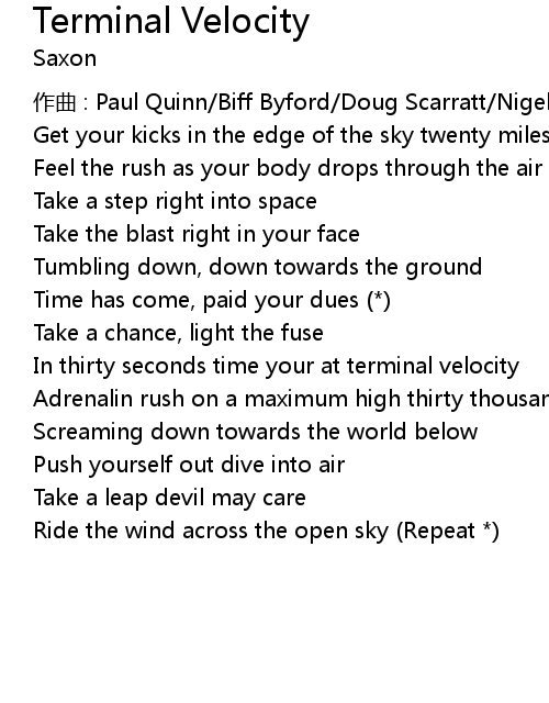 | Adrenalin rush on a maximum high thirty thousand feet to the end of the line | |