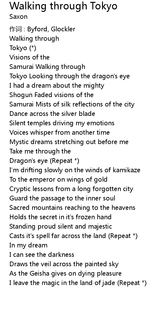 | Song | Walking through Tokyo |
