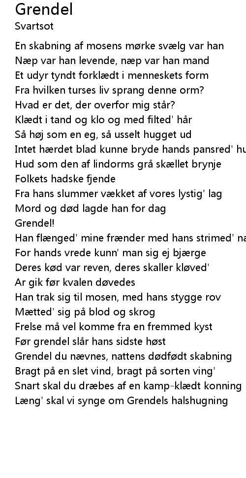 | Grendel du nævnes, nattens dødfødt skabning | |