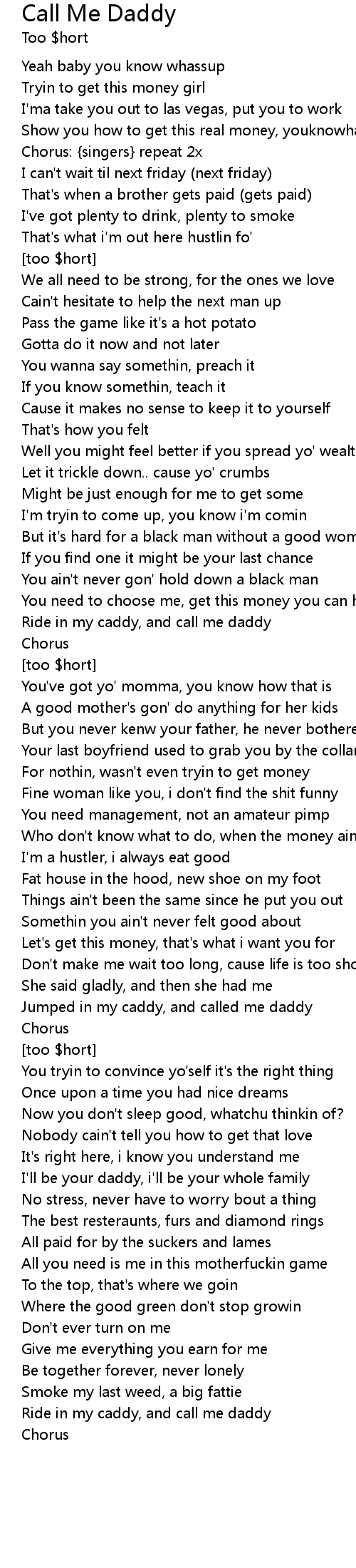 | Ride in my caddy, and call me daddy | |