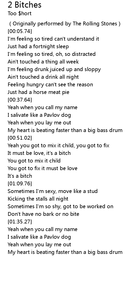| [01:07.82] | It's a bitch |