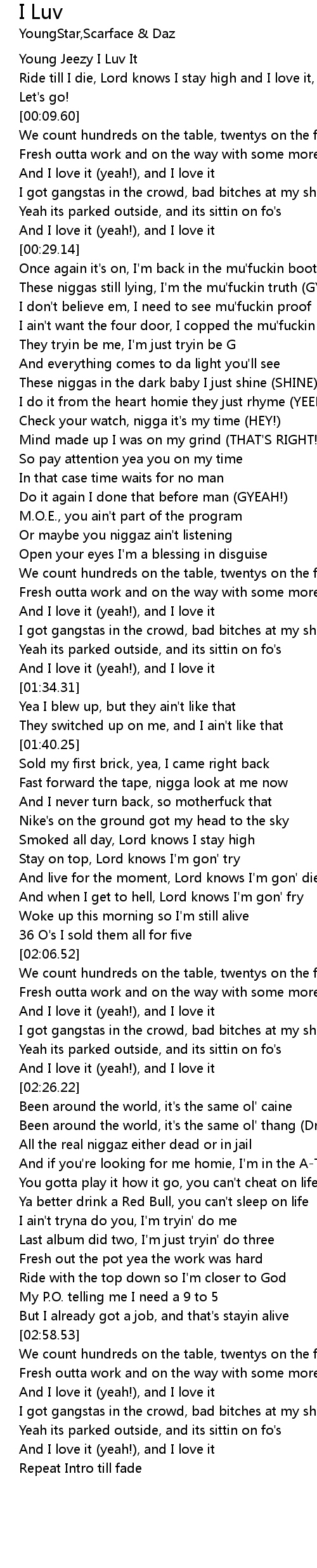 [00:01.22] Ride till I die, Lord knows I stay high and I love it, and I love it