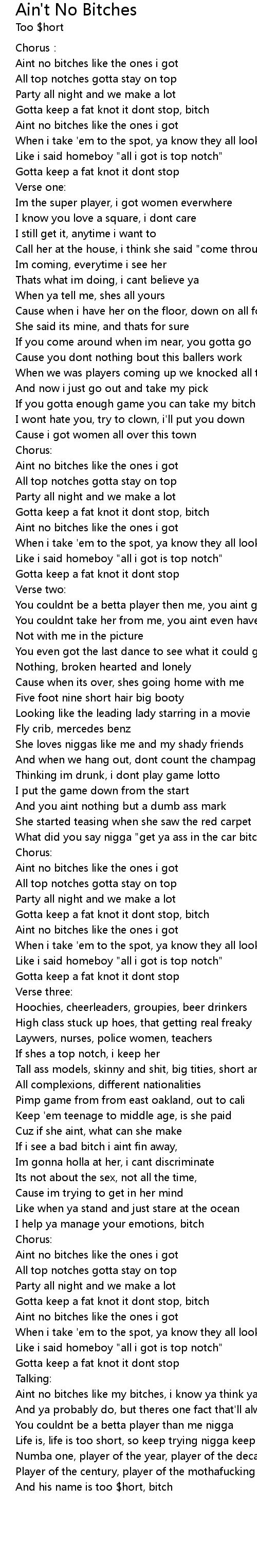 | Aint no bitches like the ones i got | |