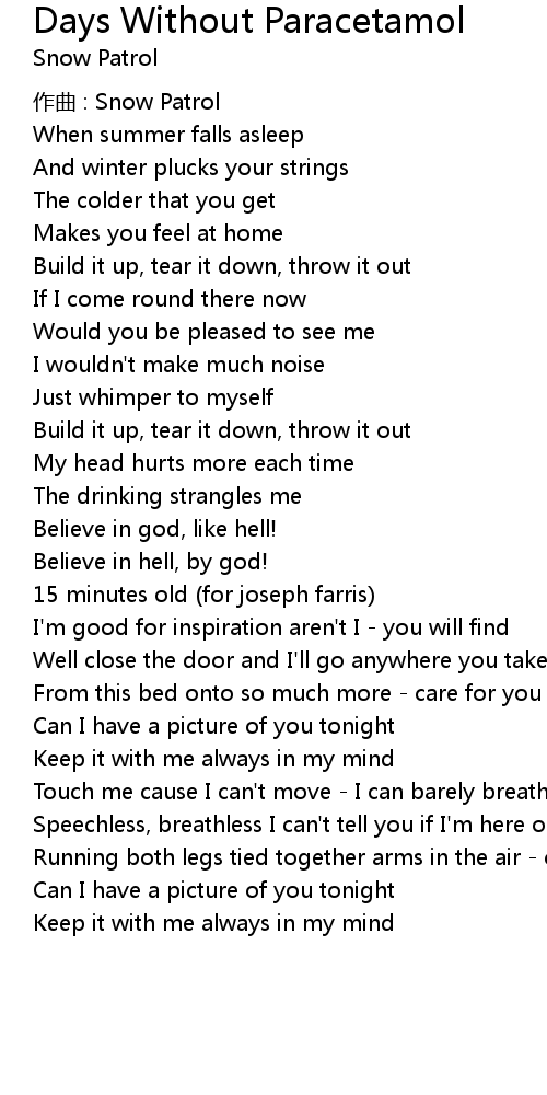 | Song | Days Without Paracetamol |