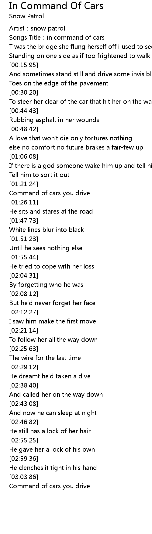 | [03:05.54] | Command of cars you drive |