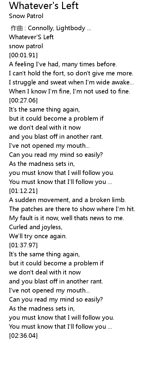 | [00:00.00] | 作曲 : Connolly, Lightbody ... |