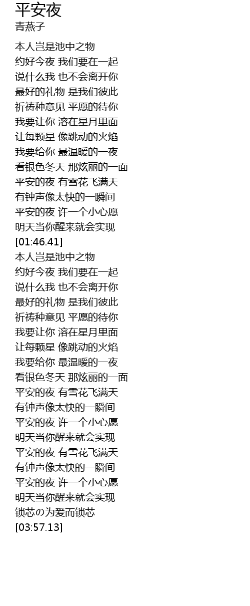 | [01:33.48] | 平安的夜 许一个小心愿 |
