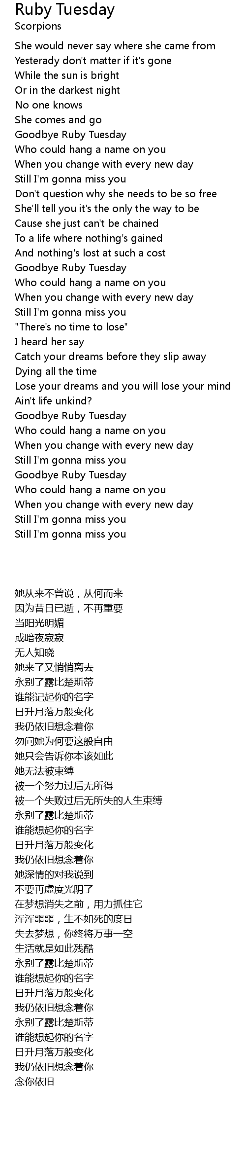 | [01:49.02] | Goodbye Ruby Tuesday |
