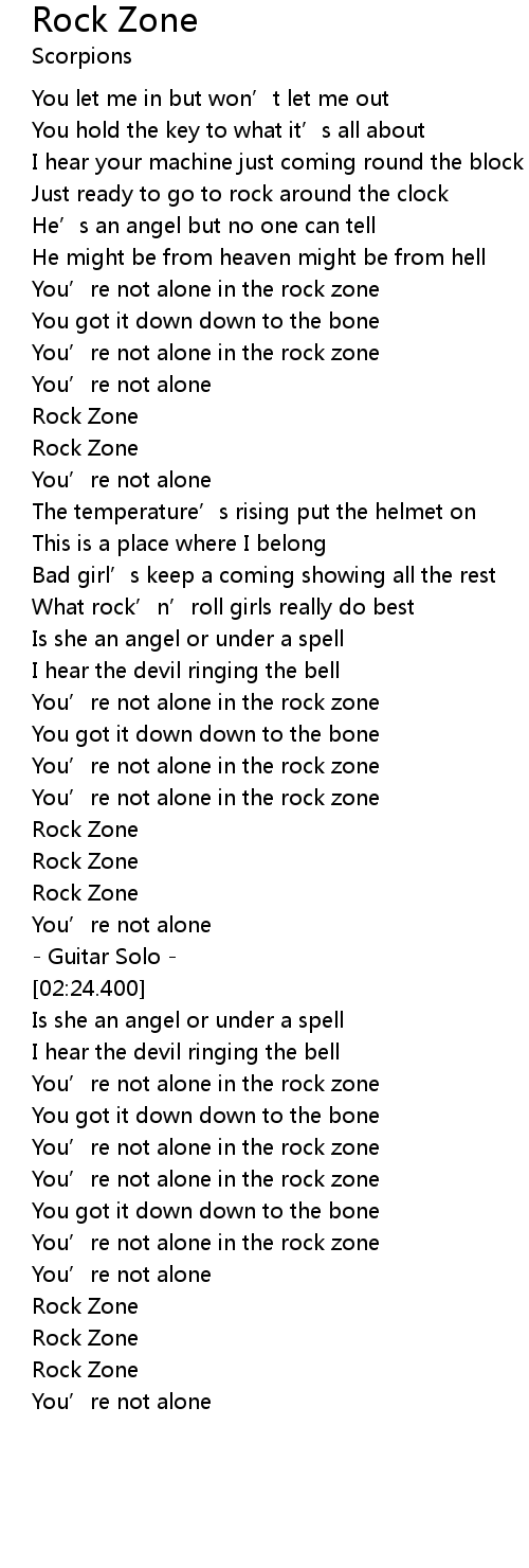 | [00:49.610] | You' re not alone in the rock zone |