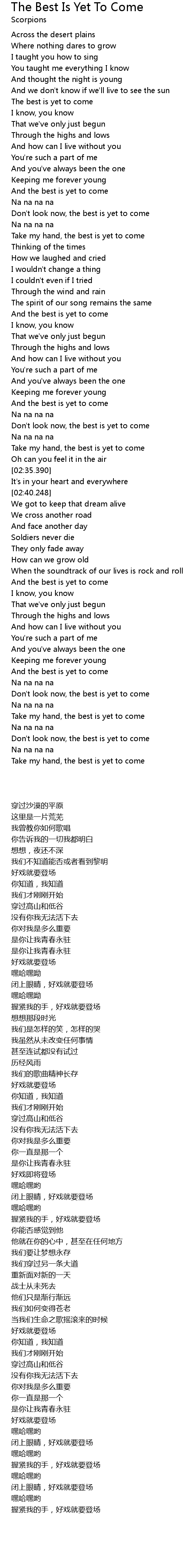 | [02:20.570] | Don' t look now, the best is yet to come |
