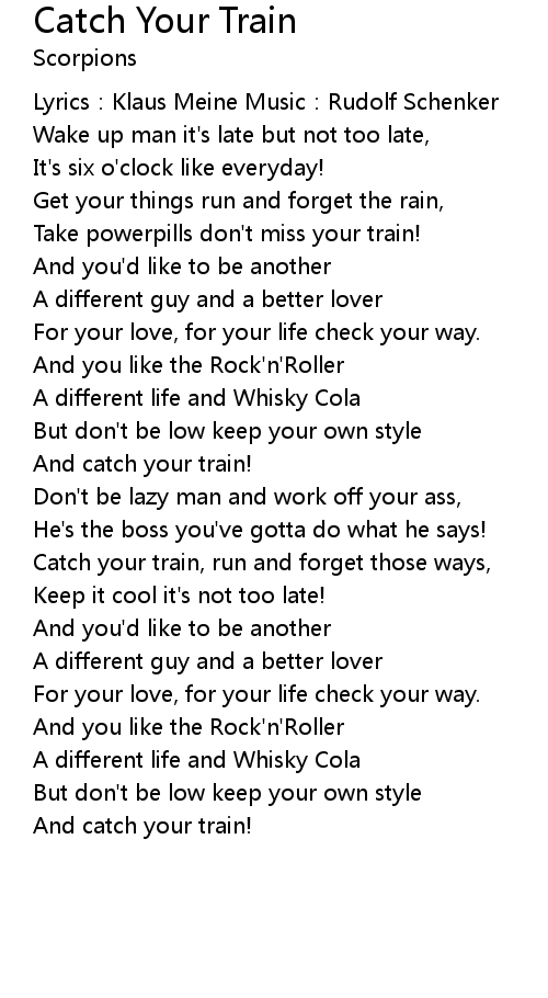| Song | Catch Your Train |