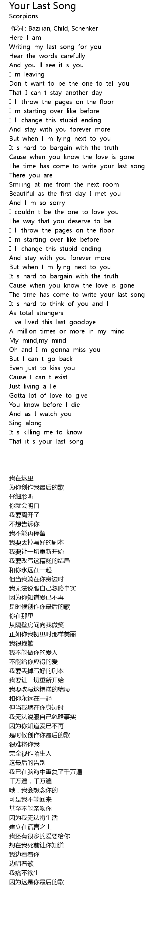 | [00:28.05] | Writing my last song for you |