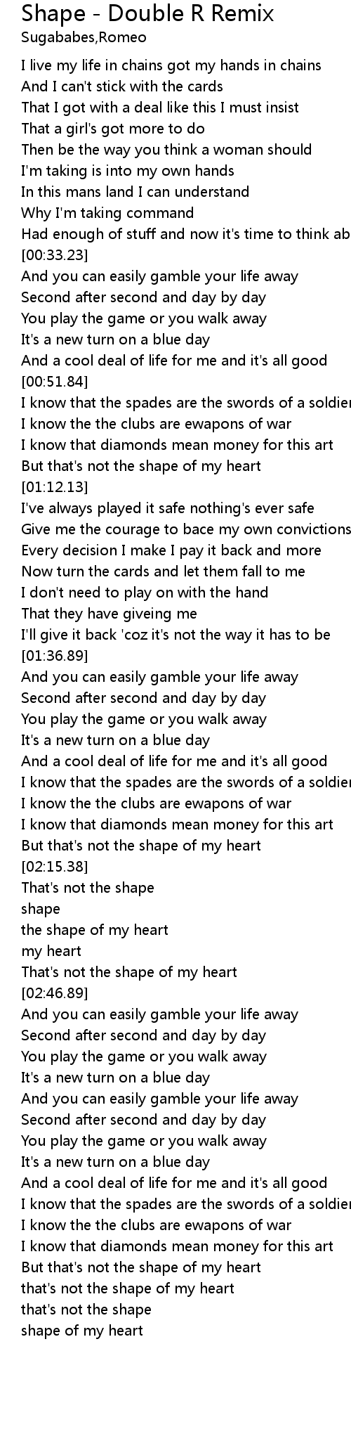 | [02:22.88] | the shape of my heart |