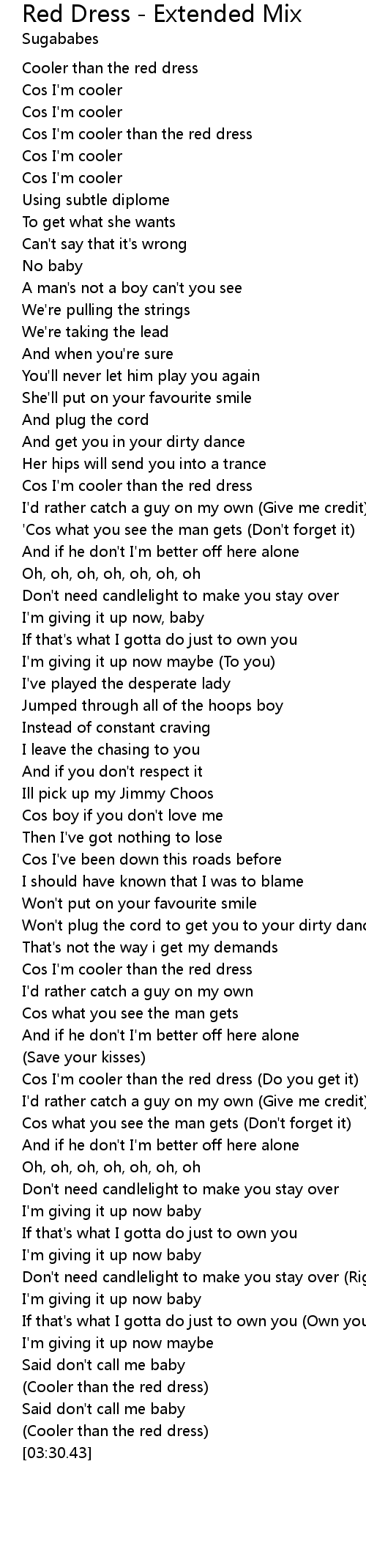 [02:33.82] Cos I'm cooler than the red dress (Do you get it)