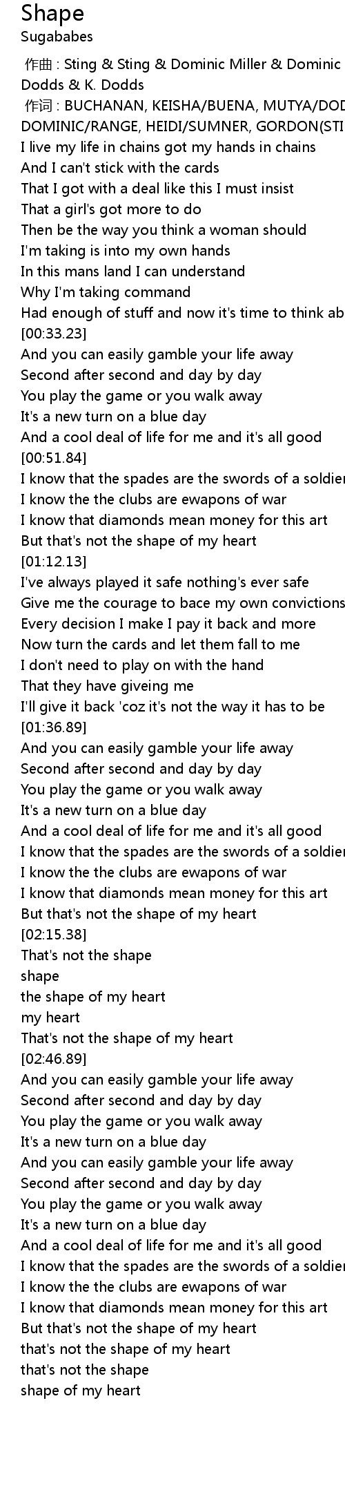 | [02:22.88] | the shape of my heart |