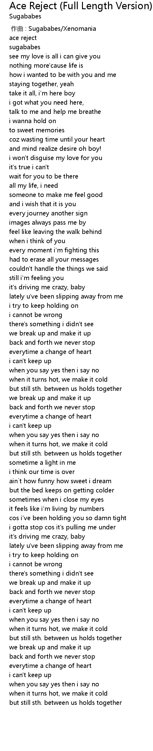 | Song | Ace Reject (Full Length Version) - Full Length Version |