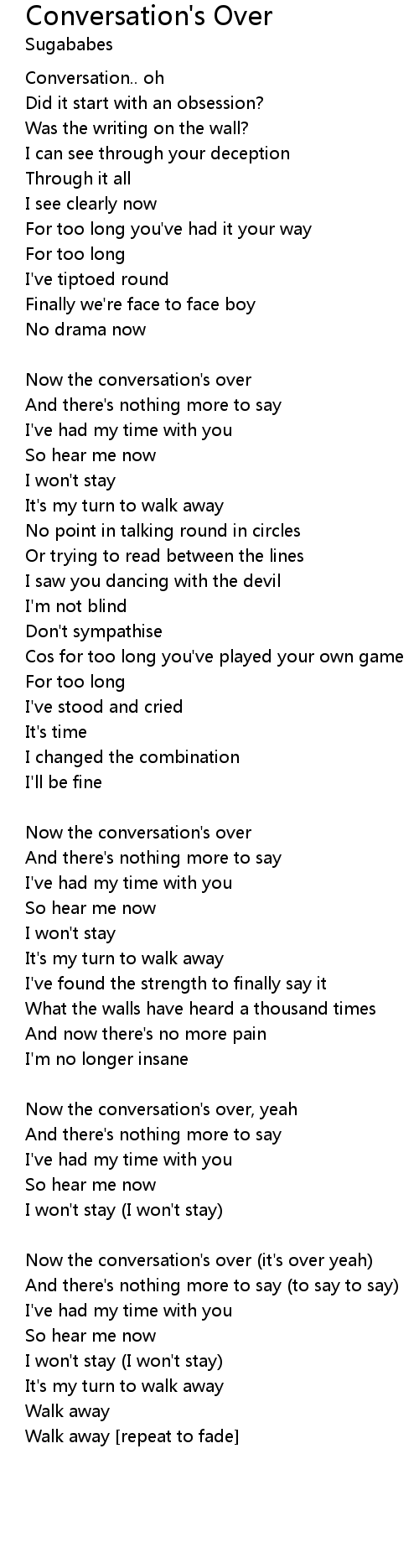 | Now the conversation's over, yeah | |