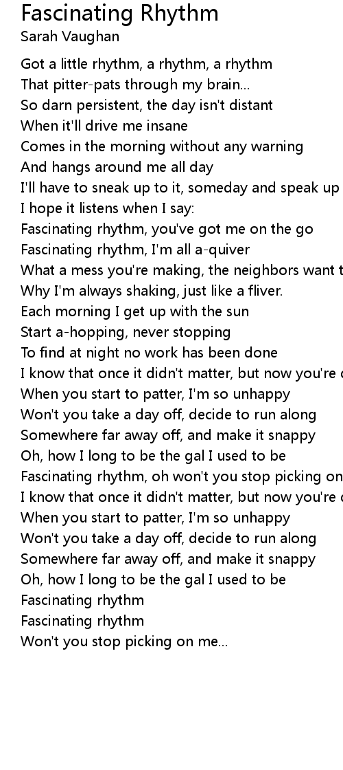 Fascinating rhythm, oh won't you stop picking on me? |