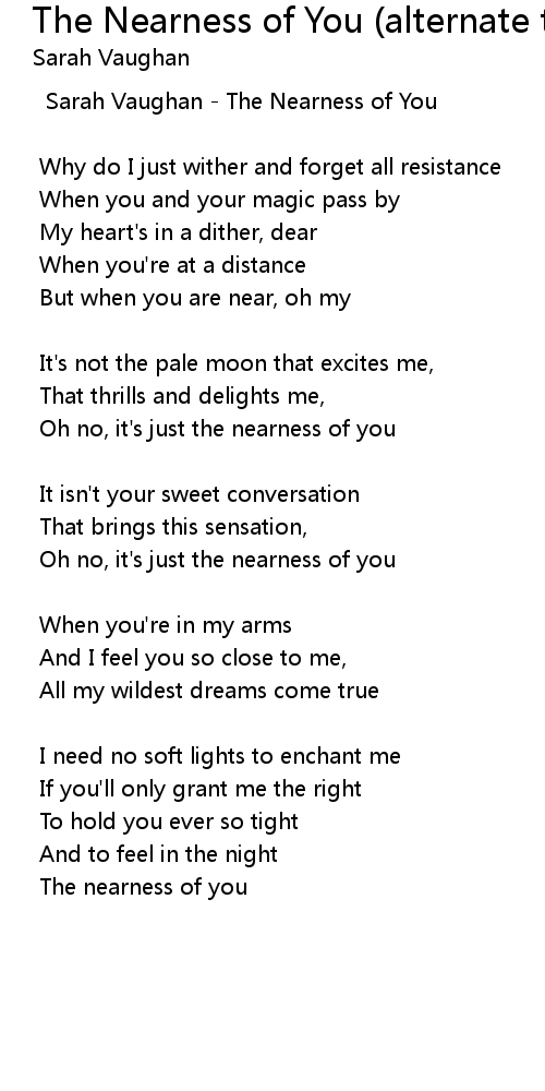 The Nearness of You (alternate take) Lyrics