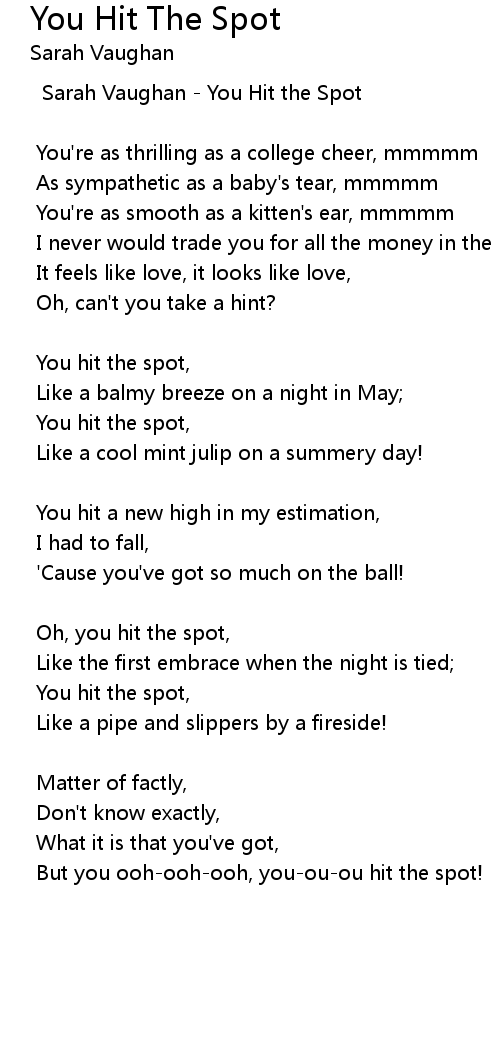 You hit the spot, |