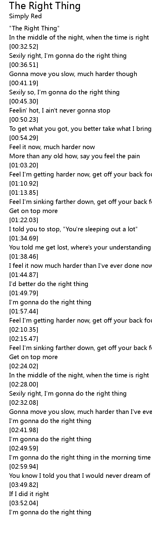 [02:57.39] I'm gonna do the right thing in the morning time now